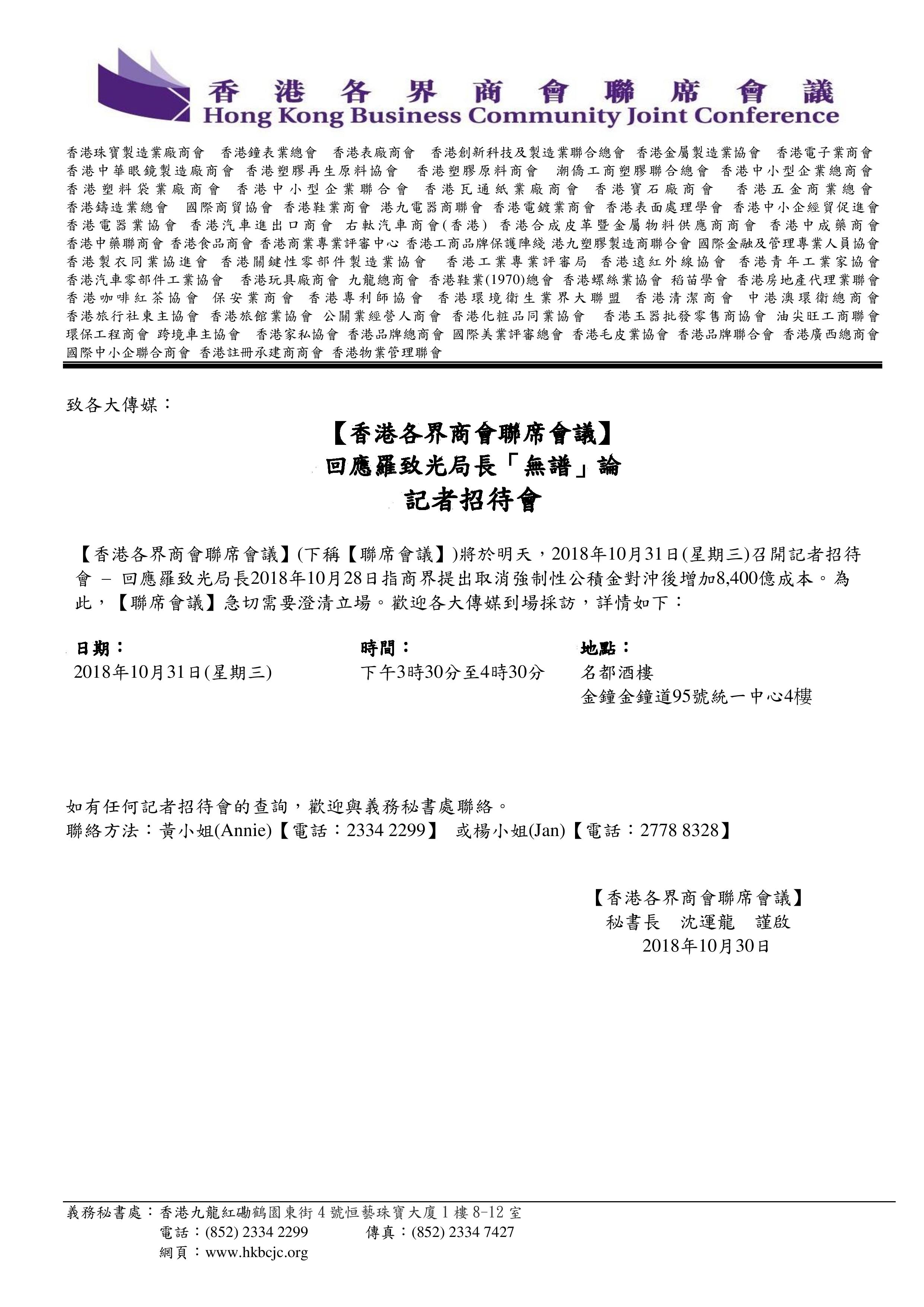 | 36 | 回應羅致光局長就10月23日《聯署聲明(反對【取消對沖】新方案及回應施政報告》招待會 | 30-10-2018 |