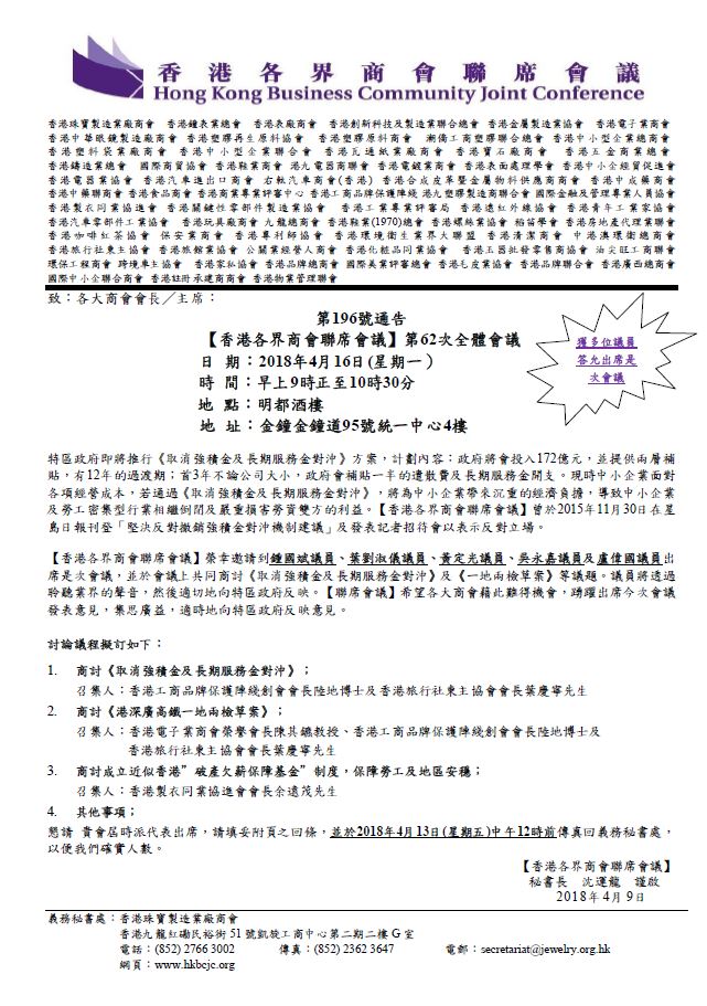 | 32 | 第61次會議通告 | 09-02-2018 |